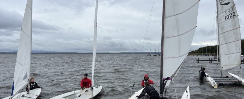 Mit einer akademischen Stunde Verspätung startete die 1. Wettfahrt um 12:45 Uhr. Während das Aufriggen noch im Regen stattfand, verbesserte sich das Wetter und der Regen ließ während der Wettfahrt nach. Mit 2x Dart18 Katamaranen, 1x Gleitjolle, 1x Zugvogel und 2x ILCA Laser startete das Rennen. Doch hier und da gab es gleich Probleme z.B. ließ sich das Ruder des Zugvogels nicht runterlassen.. fix wurde während Wettfahrt 1 und 2 eine Übergangslösung in der Werkstatt durch Niklas H. und Mareike improvisiert und so konnten sie zur 3. Wettfahrt wieder einsteigen. Kalt und erschöpft ging es nach guten 2,5h Regatta wieder zurück ins Warme und der Tag fang seinen Ausklang gemütlich, bei Kaffee, Kekse und später Linsensuppe mit Schokopudding zum Nachtisch im Salon. Nachdem noch eine Kat-Berechtigung verteilt und die Auswertung der Wettfahrten abgeschlossen war, wurden die Sieger gekürt. Während des Nachmittags frischte der Wind noch einmal kräftig auf – das Zeitfenster für die Regatta war perfekt gewählt und alle waren sicher wieder im Hafen Neue Moorhütte angekommen.